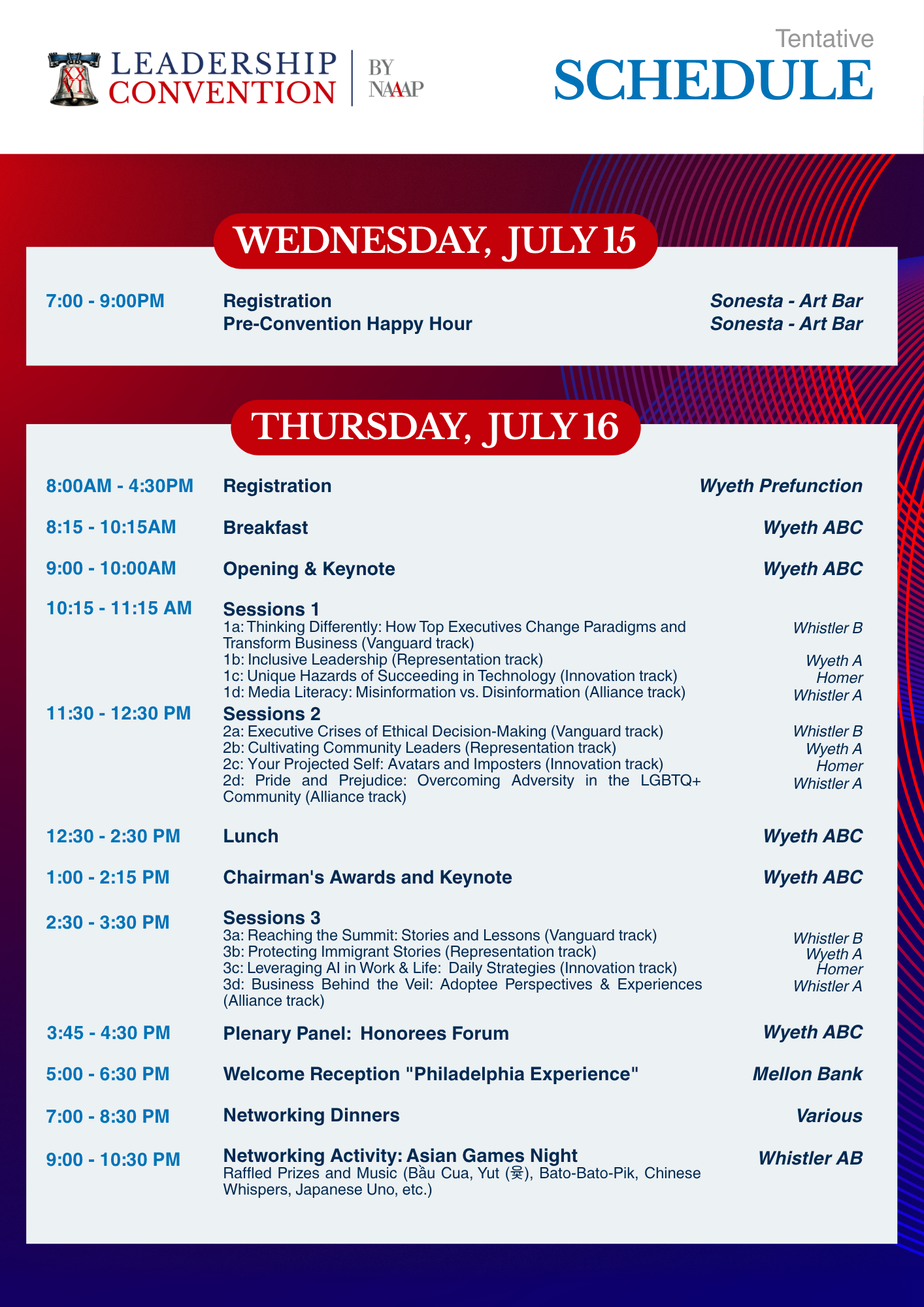 The 39th annual Leadership Convention by NAAAP is coming to the Sonesta Philadelphia hotel from Thursday, July 16 to Sunday, July 19, 2026. In this “City of Firsts”, NAAAP will be celebrating the 250th anniversary of the U.S. in the place where this country started and where NAAAP has never had a convention.